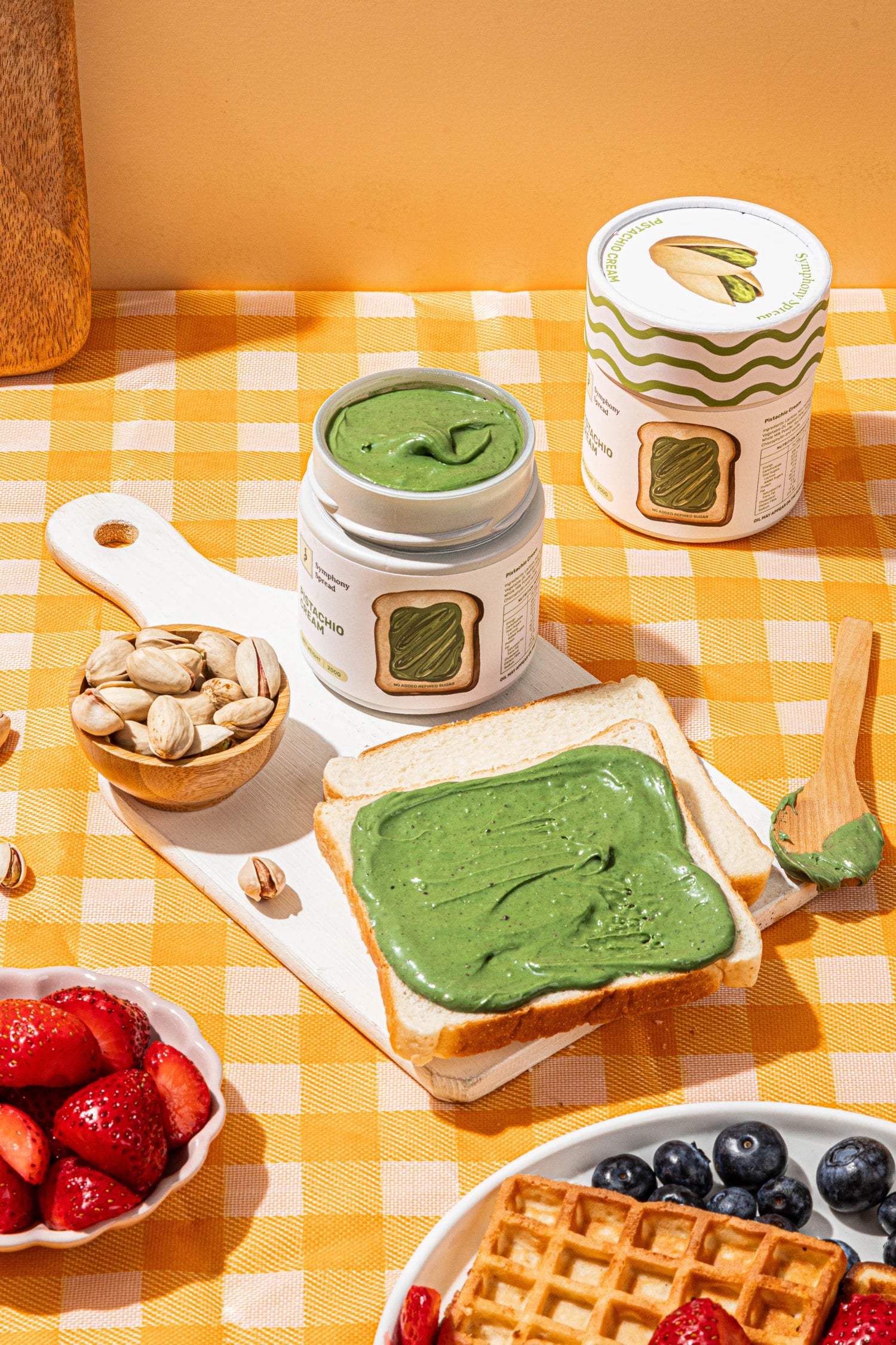 Choose the taste that suits you from our diverse collection: rich dark chocolate, smooth Italian hazelnut cream, vibrant green pistachio cream, black sesame with its deep oriental notes, royal Iranian saffron, or refreshing Japanese matcha. Each flavor carries its own character and every jar is a promise of a truly unforgettable experience.